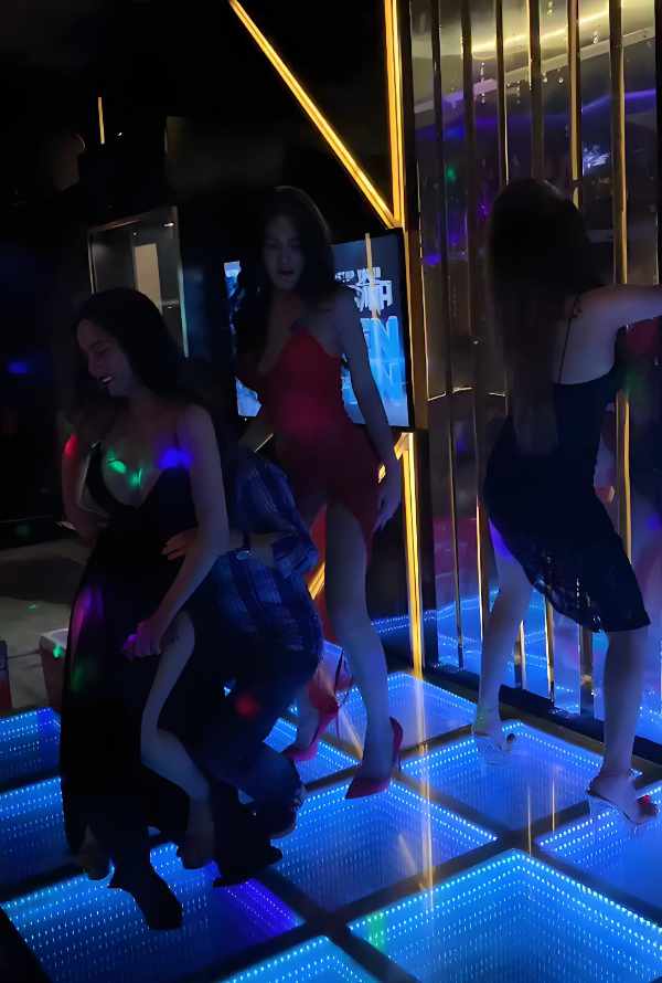 隨著酒興正酣,包廂內的燈光轉為極致的暗紅,透出一股墮落的淫靡。在眾人起鬨下,女孩緩緩起身開始了她的個人秀。